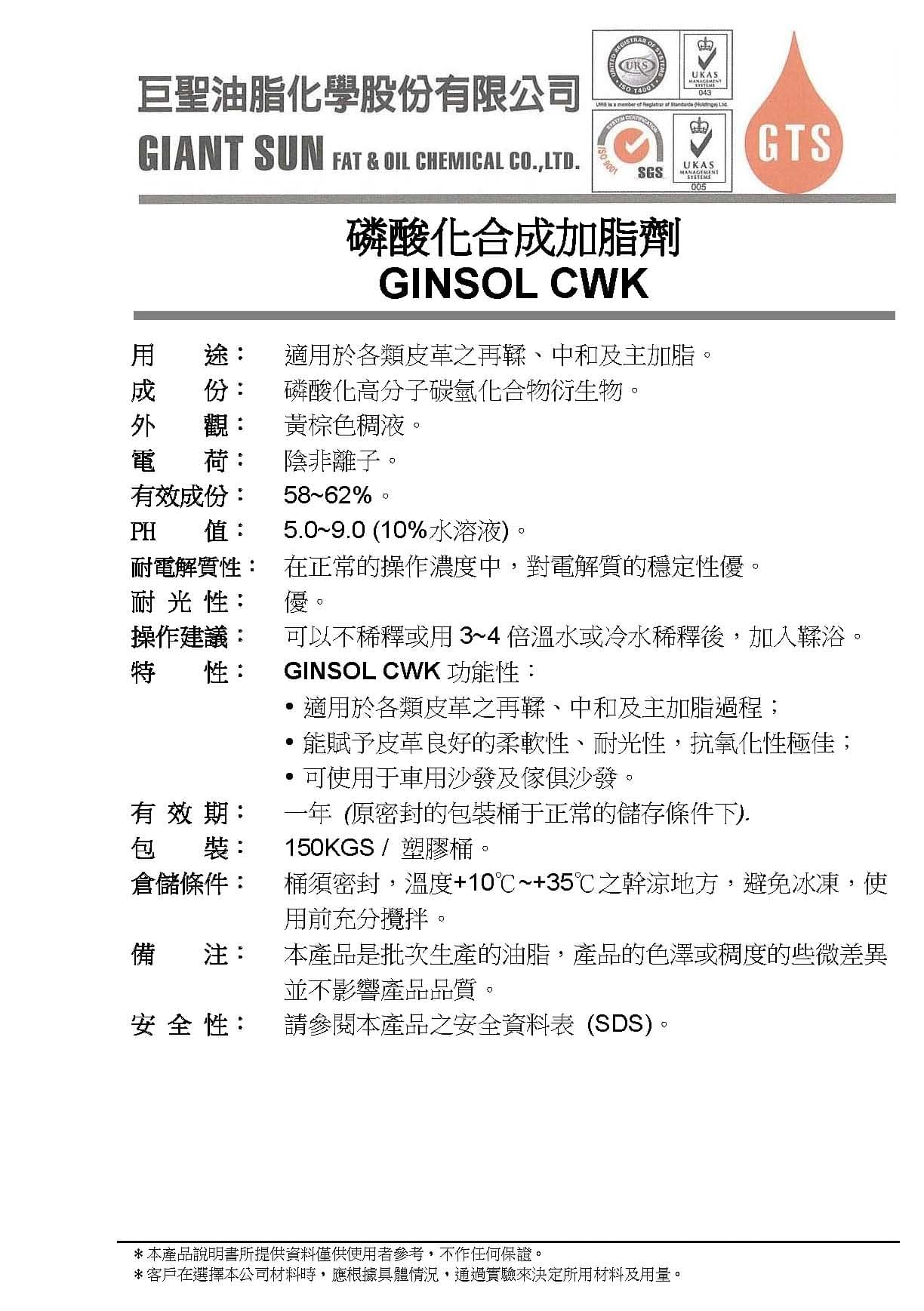 - 能賦予皮革良好的柔軟性、耐光性,抗氧化性極佳。