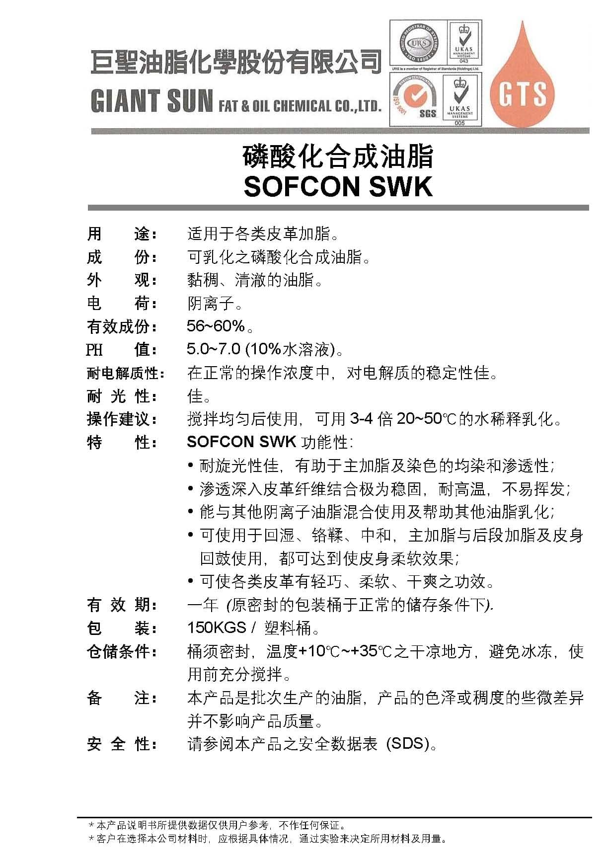 - 可使各类皮革有轻巧、柔软、干爽之功效。