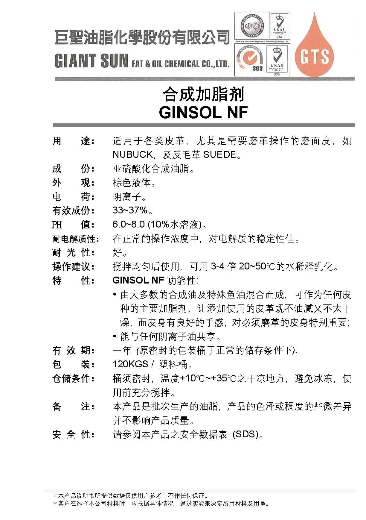 - 由大多数的合成油及特殊鱼油混合而成,可作为任何皮种的主要加脂剂,让添加使用的皮革既不油腻又不太干燥,而皮身有良好的手感,对必须磨革的皮身特别重要。